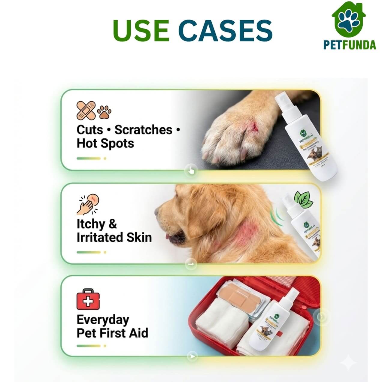 - Skin Concerns Addressed: Cuts, scratches, hot spots, rashes, itchy skin, minor wounds, surface skin infections